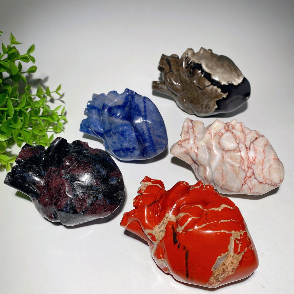 These mixed crystal hearts promote emotional healing, love, and compassion. Each stone, from Red Jasper to Volcanic Agate, carries unique energetic properties helping balance the heart chakra and enhance meditation practices.