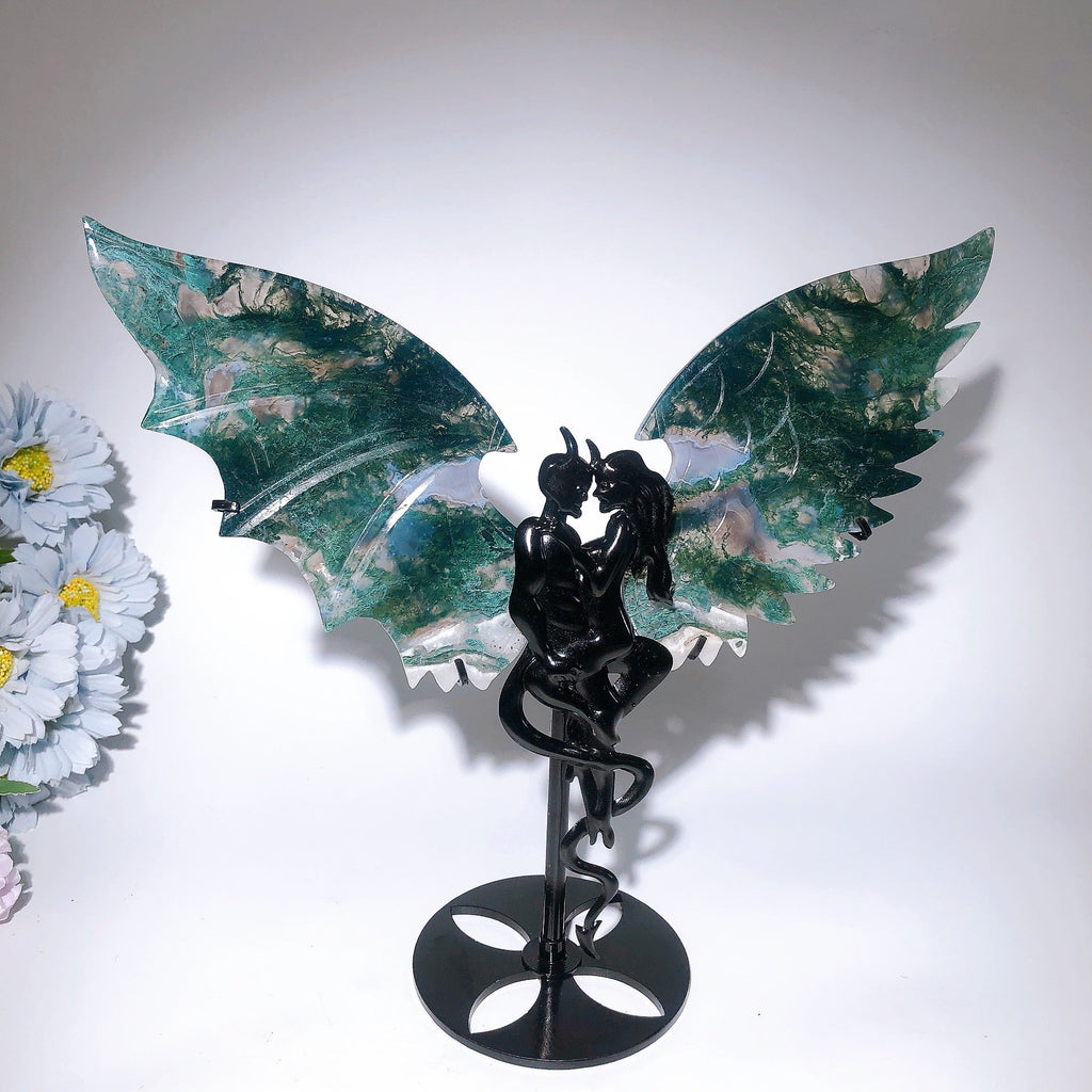 Cette figurine est livrée avec un support rond robuste qui assure sa stabilité. Placez-la dans un endroit bien éclairé pour mettre en valeur la beauté des ailes d'agate mousse et laisser son énergie curative imprégner votre espace.