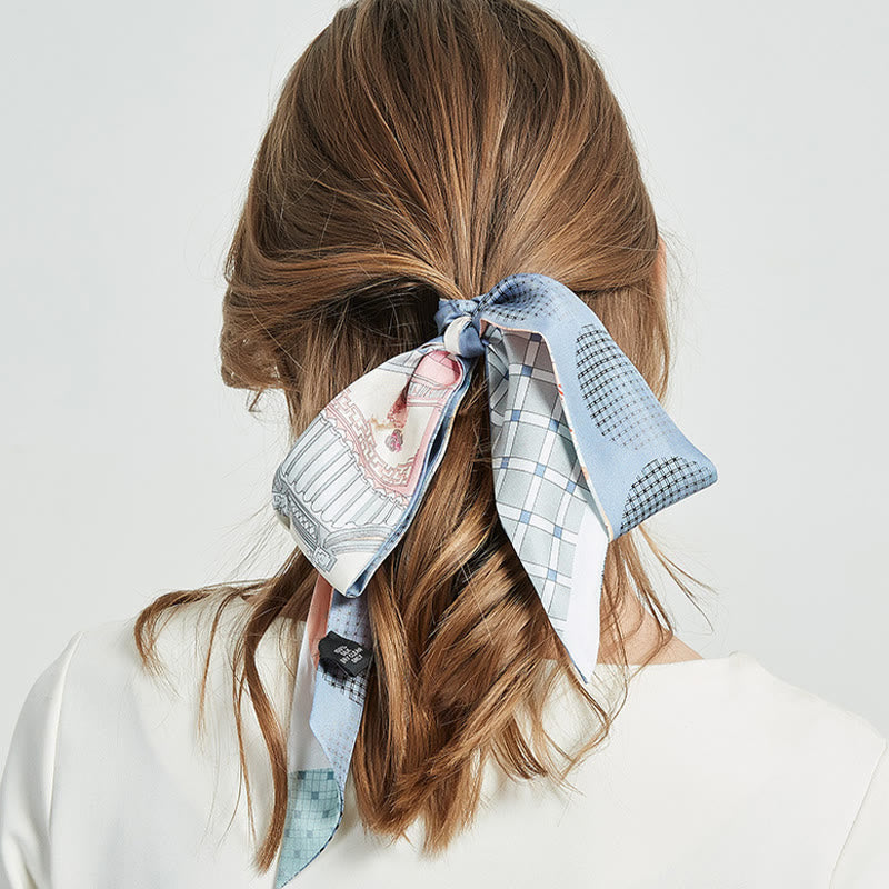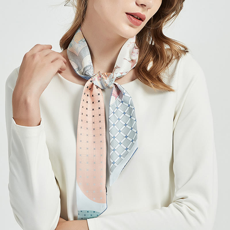 Confectionnée en 100 % soie de mûrier de qualité supérieure de grade 6A, 12 mommes, cette écharpe twilly offre une douceur incomparable sur la peau tout en offrant un drapé élégant et luxueux. Chaque motif capture l'essence de paysages spirituels et de traditions artistiques intemporelles.