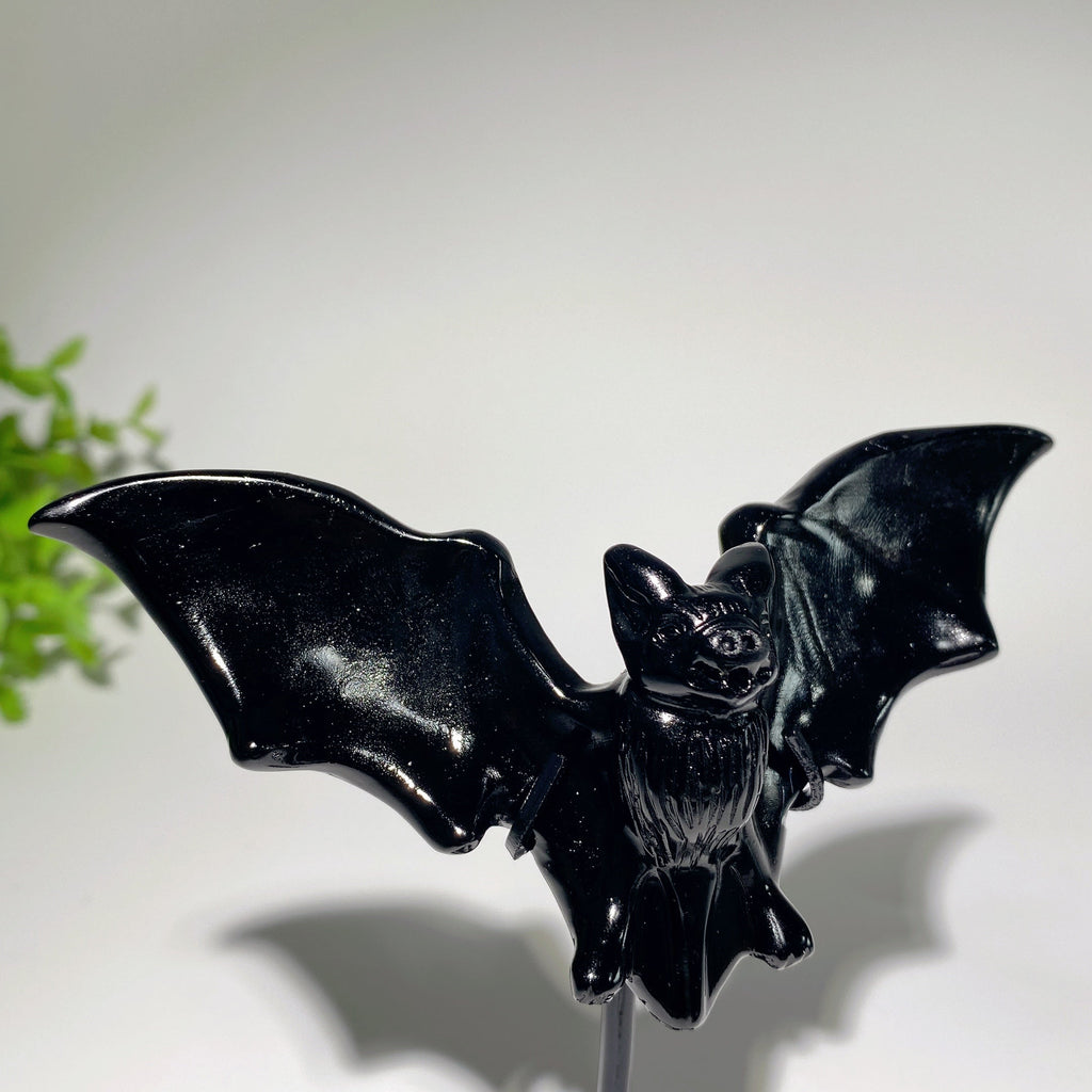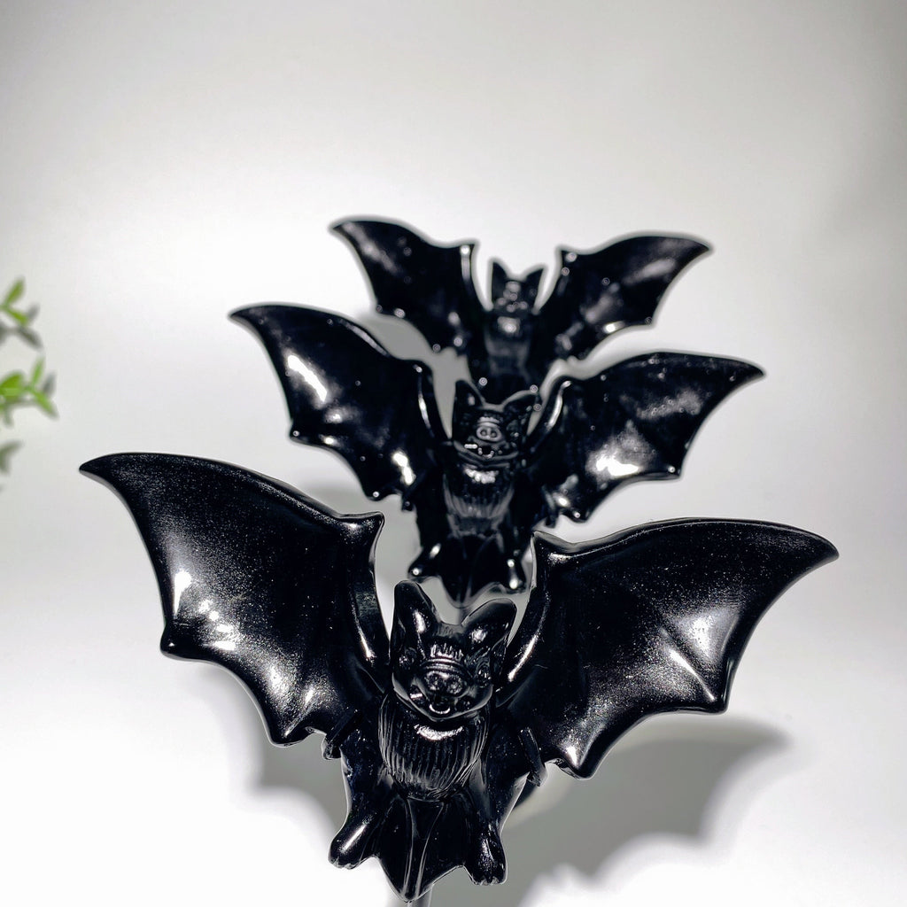 La sculpture de chauve-souris mesure environ 4,8 pouces (environ 12,2 cm) de longueur et le support inclus mesure environ 3,2 pouces (environ 8,1 cm) de hauteur, idéal pour une présentation sur table ou comme décoration d'Halloween unique.
