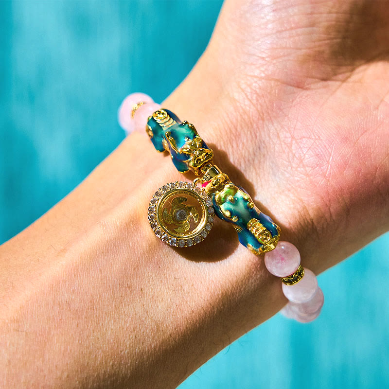 Au cœur de ce bijou en cristal de guérison se trouve le fascinant charme Pixiu, une créature mythique vénérée dans de nombreuses traditions orientales comme un puissant attracteur de prospérité et protecteur contre les énergies négatives. Le Pixiu de ce bracelet possède une propriété thermochromique unique qui lui permet de changer de couleur avec la température de votre corps, créant ainsi une expérience magique et interactive.