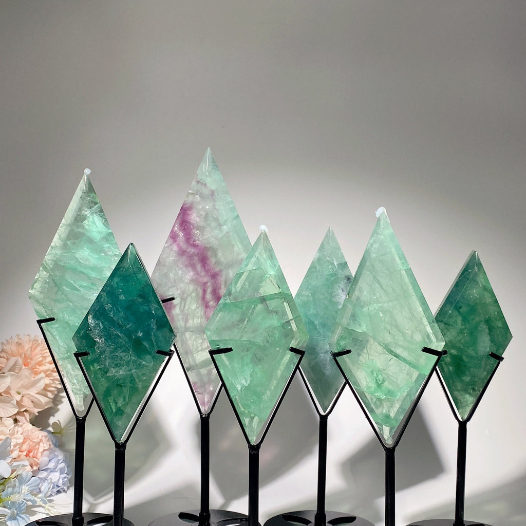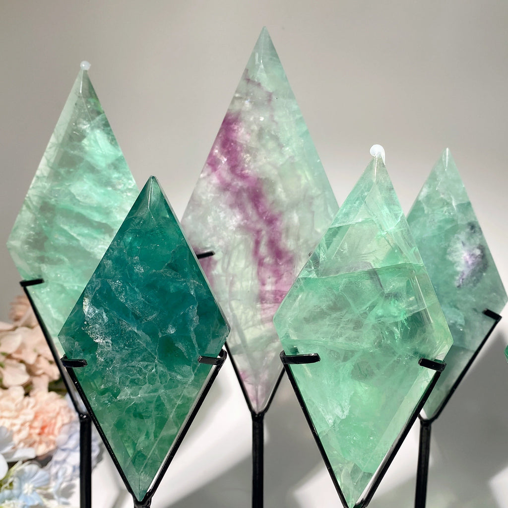 Ces dalles de fluorite en forme de losange représentent un équilibre géométrique parfait, ce qui en fait des pièces maîtresses idéales pour votre composition cristalline . Leur forme en losange crée non seulement un intérêt visuel, mais permet également à l'énergie de circuler dans plusieurs directions, améliorant ainsi la vibration globale de votre espace sacré.