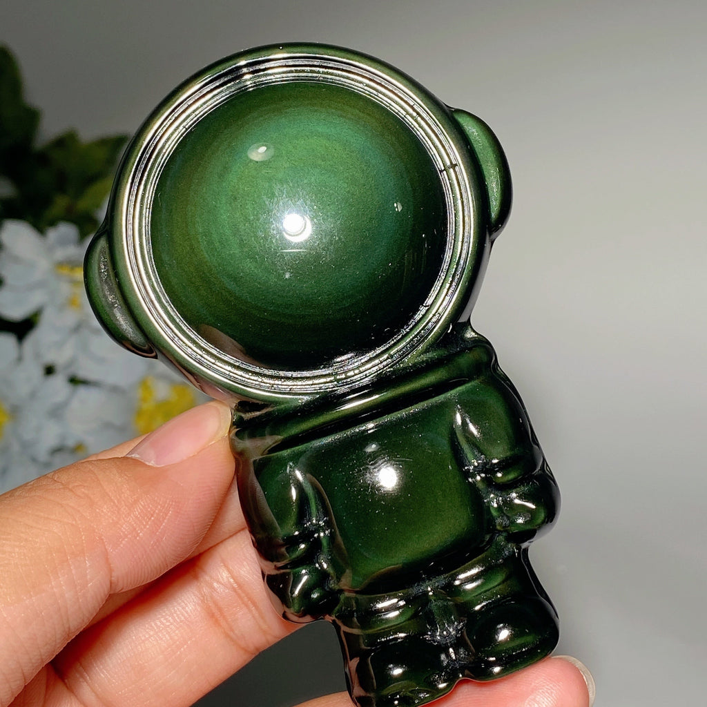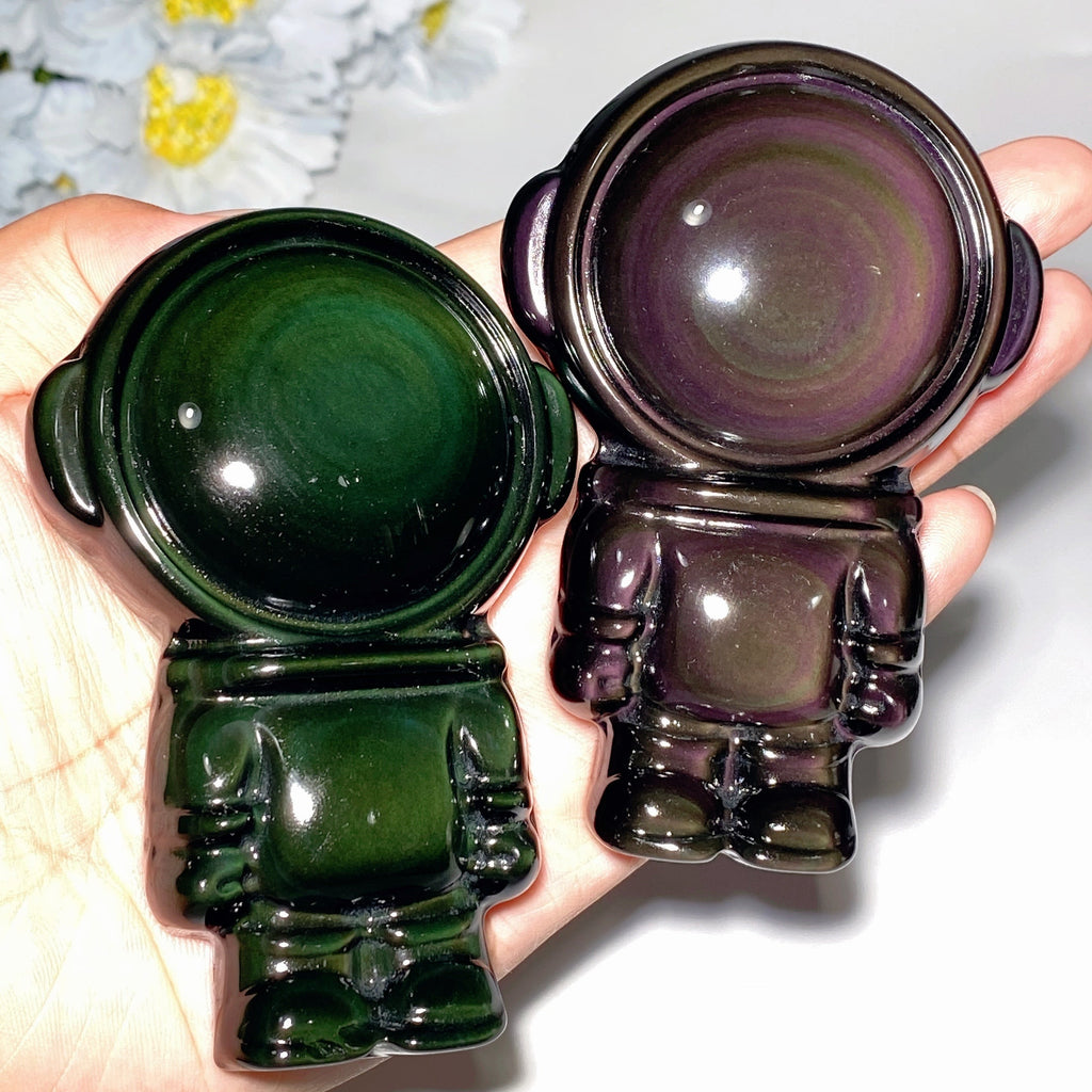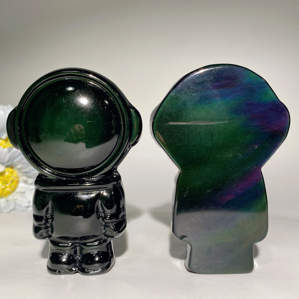 Pour ceux qui s'intéressent au travail des chakras, l'obsidienne arc-en-ciel résonne particulièrement bien avec les chakras racine et sacré, favorisant créativité et sécurité. Notre figurine d'astronaute est donc un excellent ajout à votre collection de sculptures en cristal de chakra .