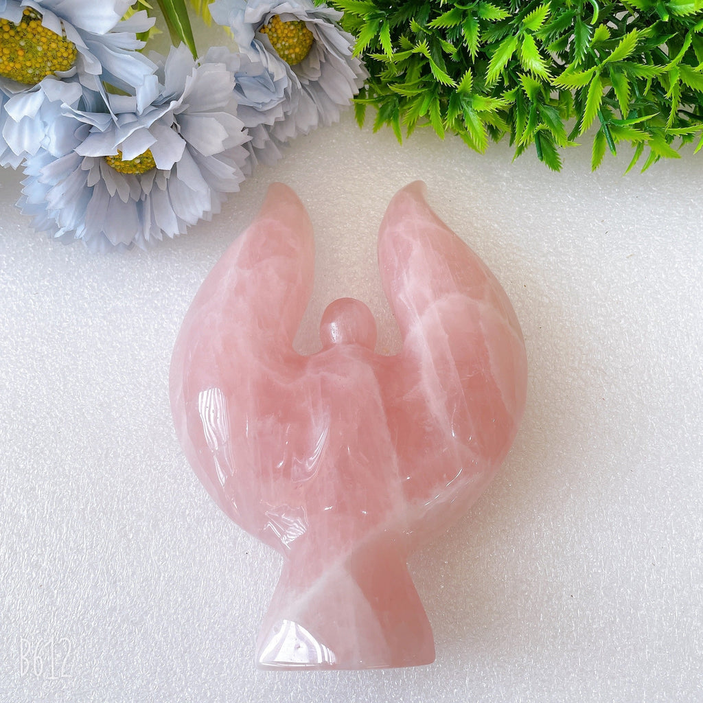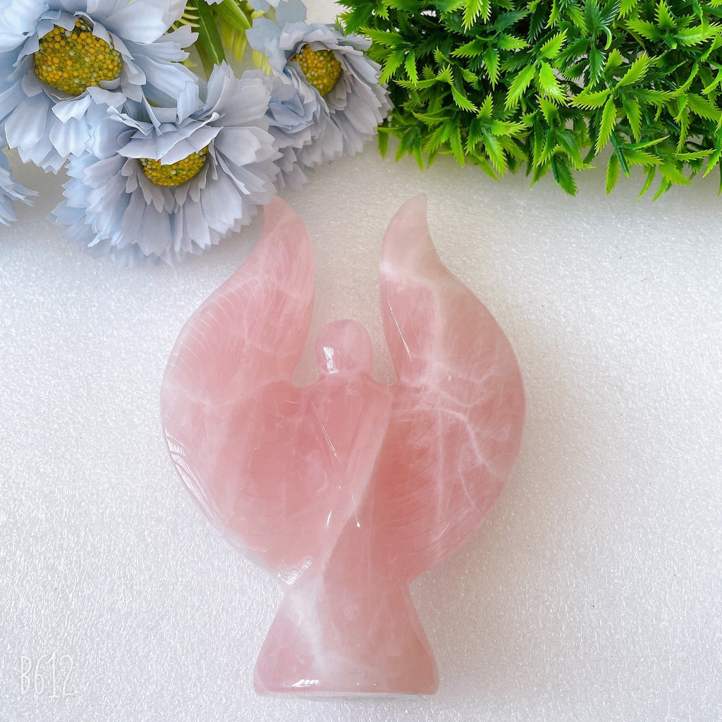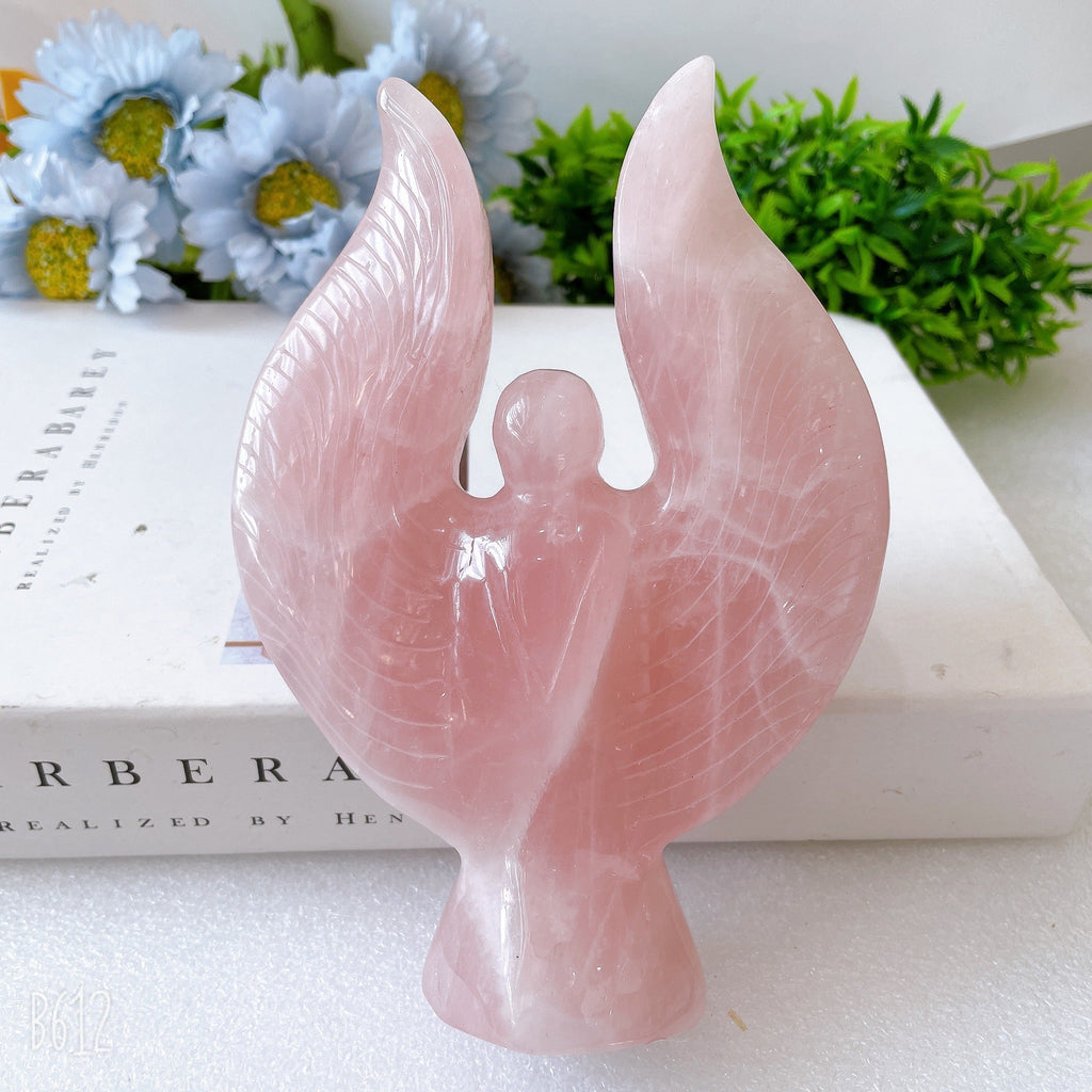 The 6-inch rose quartz angel figurine radiates loving energy, helping to promote emotional healing, compassion, and harmony. It serves as a gentle spiritual guardian, perfect for meditation and connecting with heart-centered energies.