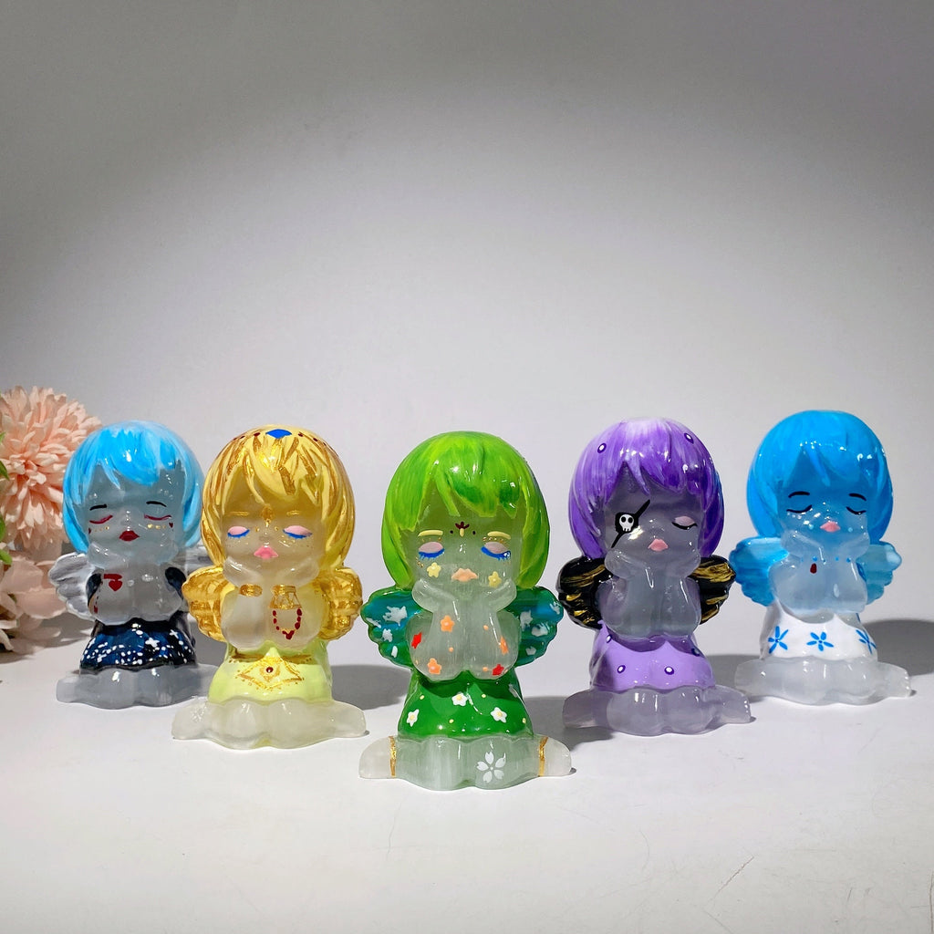 This crystal angel measures approximately 3.8 inches (approx. 9.65 cm) in height and weighs about 300 g (approx. 10.58 oz). Its comfortable size makes it perfect for display or as a loving companion during meditation.