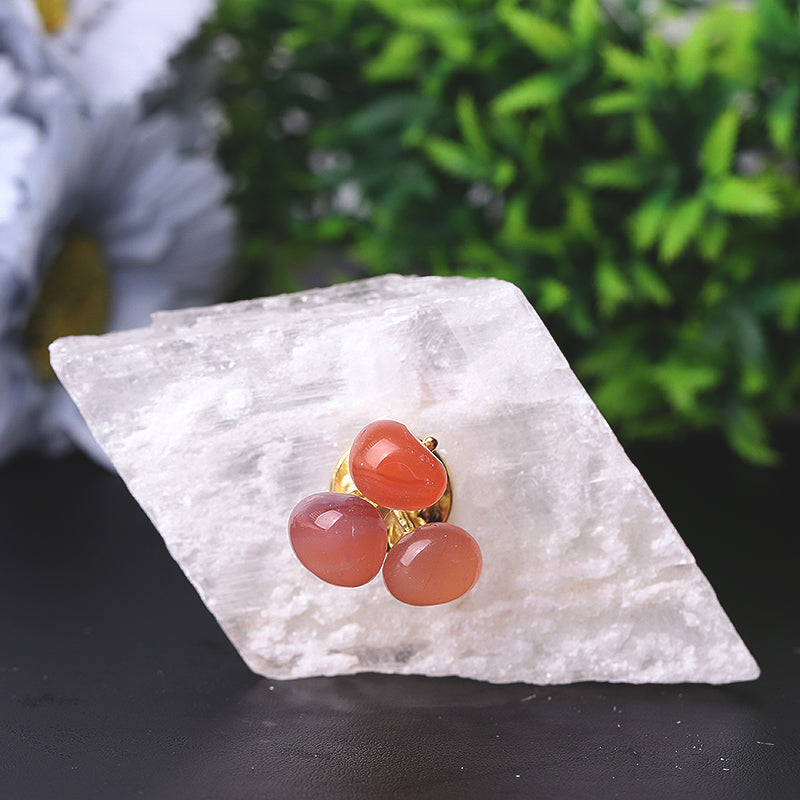 Les cornalines présentent de riches teintes allant de l'orange au rougeâtre, mais de légères variations naturelles apparaissent. Chaque pièce étant unique, les couleurs peuvent varier subtilement d'un spécimen à l'autre, tout en conservant leur éclat.