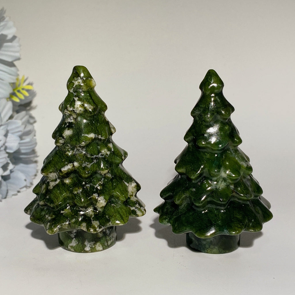 Yes, each piece is hand-carved from genuine serpentine stone. Due to its natural origins, colors and marbling patterns may vary, making each tree unique.