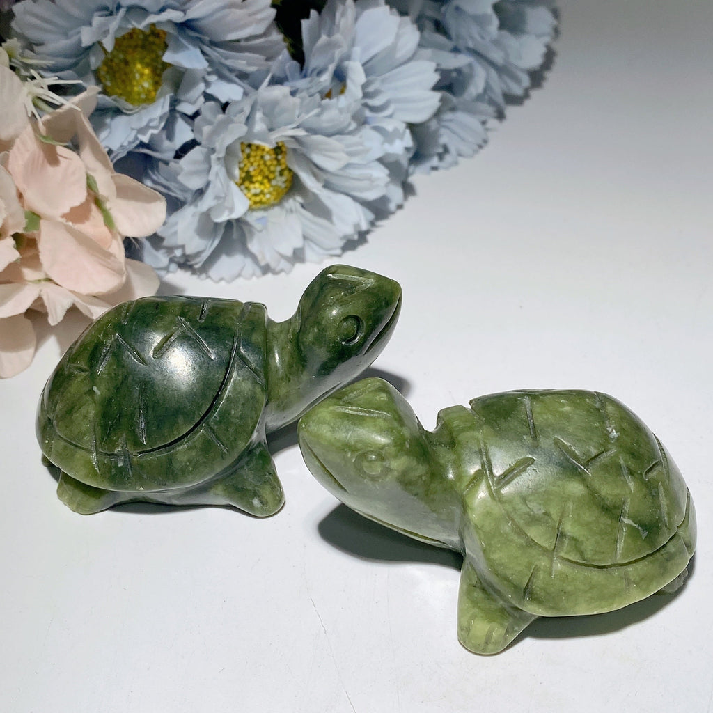 To preserve both its beauty and energy, gently clean your serpentine turtle with a soft cloth. Avoid water exposure and remove it during sleep or washing.