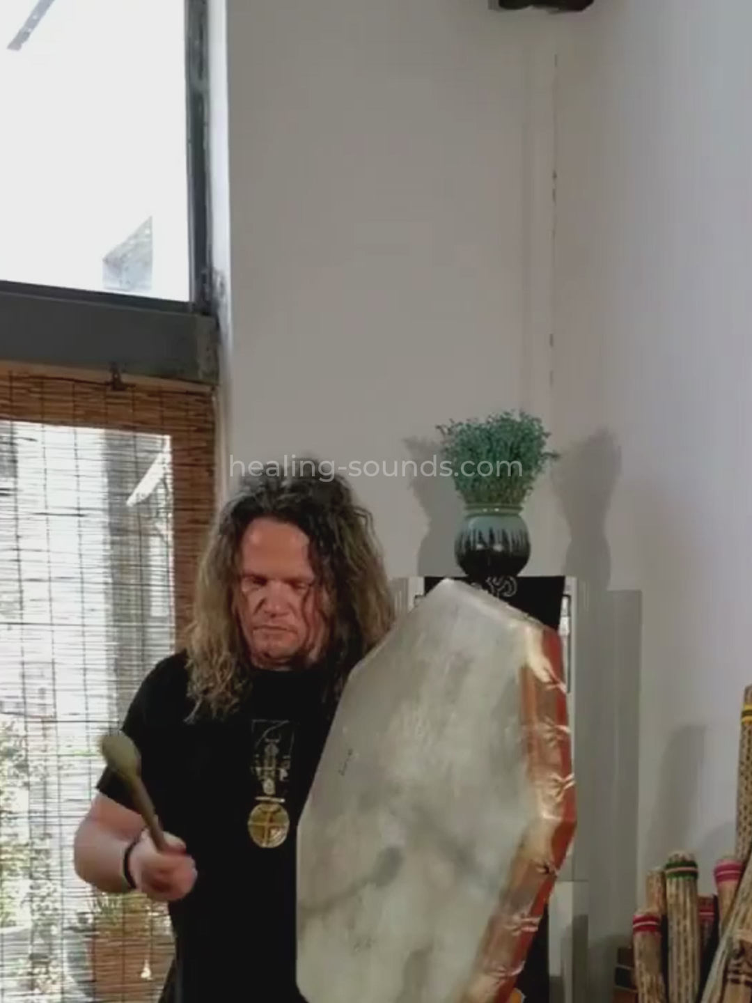 - Grands tambours (24 pouces et plus / 60 cm et plus) → Produisent des vibrations profondes et puissantes avec une longue résonance. Parfaits pour les voyages chamaniques intenses, les soins de guérison et l'immersion sonore profonde .