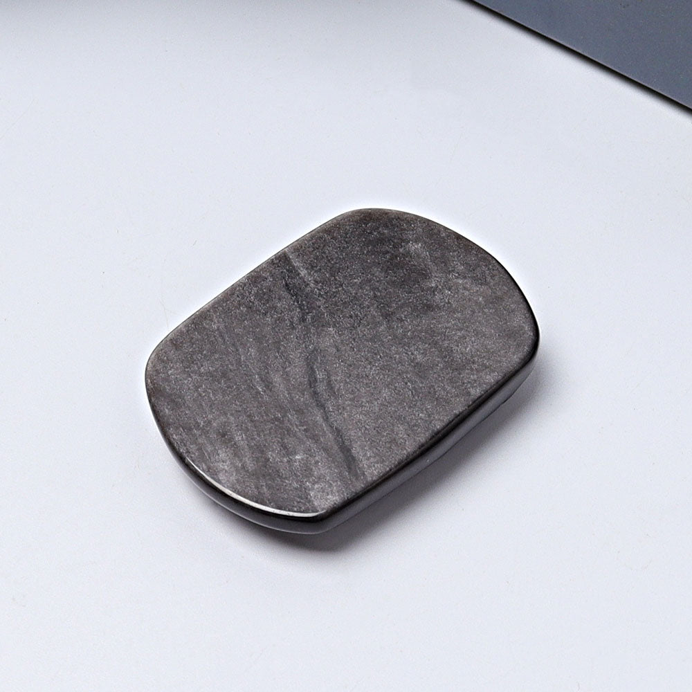 To preserve its appearance and energy, gently clean your silver obsidian carving with a soft, dry cloth after use. Avoid water or harsh chemicals, and store it in a safe place away from direct sunlight.