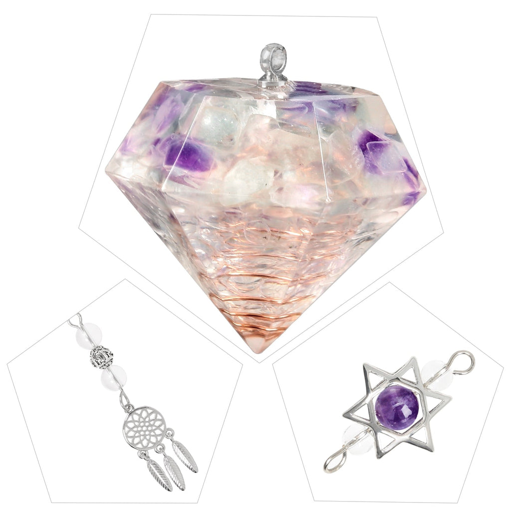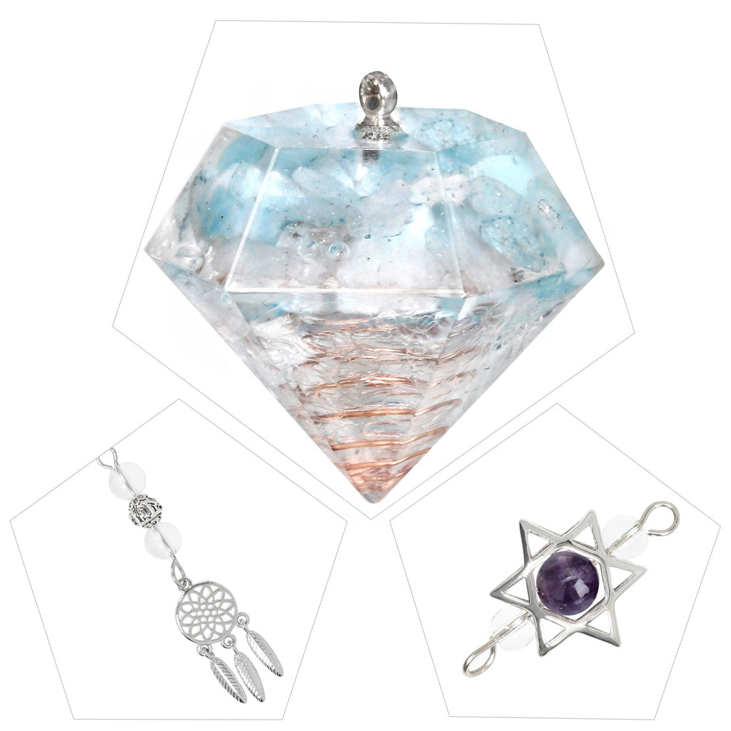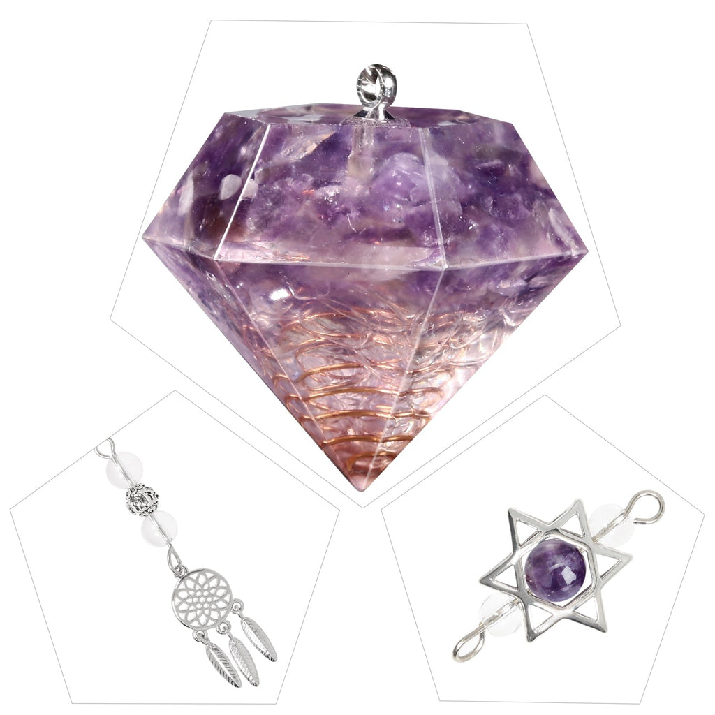 Notre pendule en cristal Étoile de David est fabriqué à partir d'une sélection de cristaux de première qualité, notamment l'améthyste, le quartz rose, le lapis-lazuli, l'œil de tigre, le jaspe rouge, la fluorite, le péridot, l'aigue-marine, la tourmaline et la labradorite. Chaque cristal a été soigneusement choisi pour ses propriétés et ses bienfaits uniques. Que vous recherchiez la protection, l'amour ou la tranquillité, ces cristaux travaillent ensemble pour améliorer vos pratiques spirituelles. Le design élégant du pendule et son savoir-faire supérieur garantissent qu'il n'est pas seulement un outil de divination, mais aussi une œuvre d'art époustouflante.