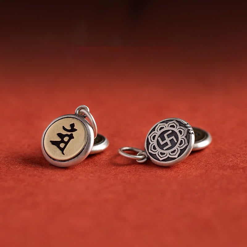 - Breloques : symbole animal du zodiaque, figure de Bouddha natal, cloche en argent avec mantra Om Mani Padme Hum