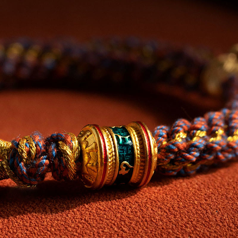 Chaque bracelet représente l'animal du zodiaque de votre choix associé à son Bouddha natal, relié par un cordon rouge porte-bonheur et orné d'une délicate clochette en argent sterling. Le mantra sacré « Om Mani Padme Hum » confère à ce bijou une résonance spirituelle supplémentaire, le transformant en un puissant outil de protection et d'énergie positive.