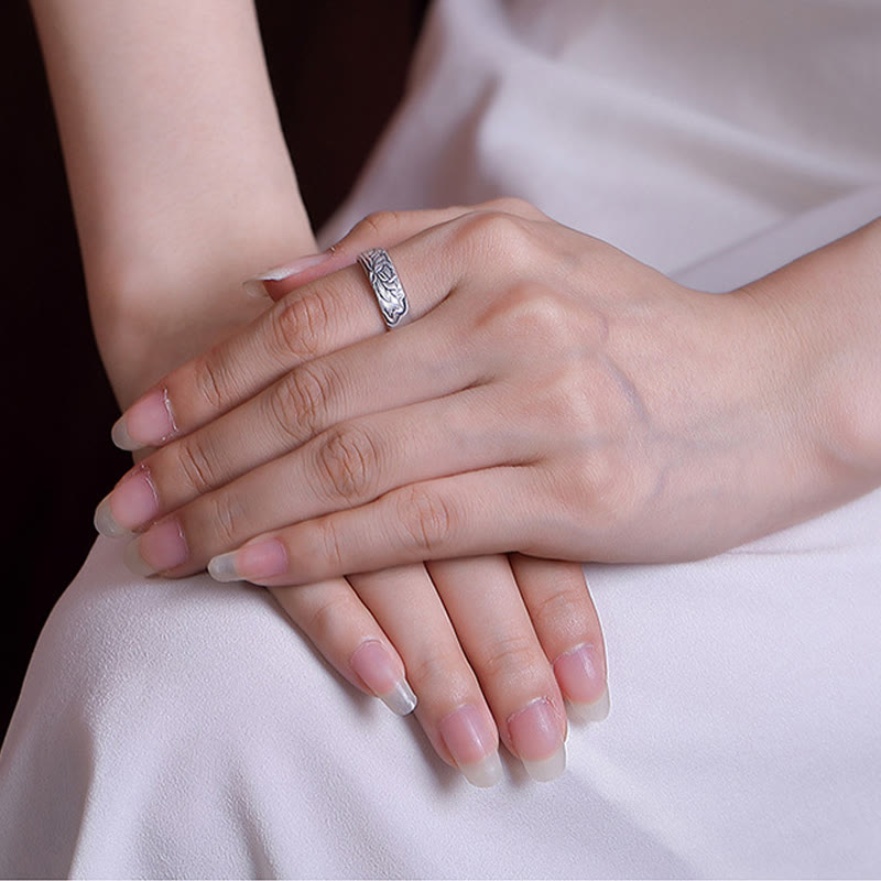 The lotus flower on this ring represents purity, rebirth, and resilience. It reminds you to persevere through hardships and embrace enlightenment and new beginnings in your life's journey.