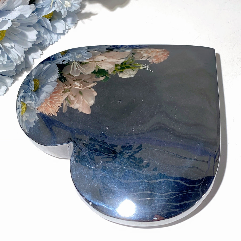 To maintain its beauty and energy, gently clean your Terahertz crystal heart with a soft cloth and avoid water exposure. Remove during sleep or cleaning rituals.