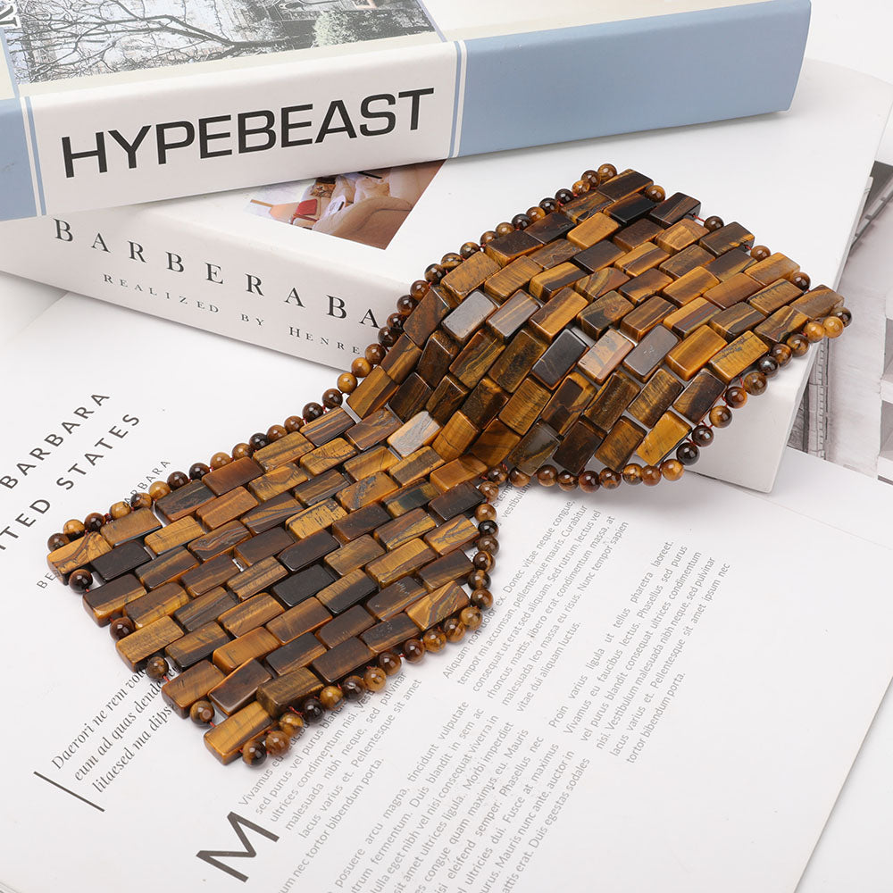 Le bandeau œil de tigre est fabriqué à partir de pierres d'œil de tigre naturelles, censées offrir une protection spirituelle, un ancrage et un équilibre énergétique, ce qui le rend idéal pour la méditation et les utilisations rituelles.