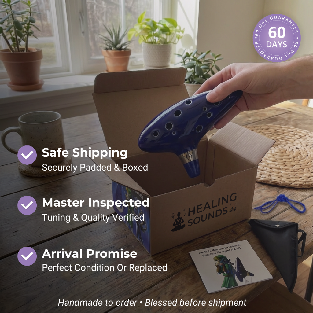 Nous collaborons avec des artisans renommés spécialisés dans la fabrication d'ocarinas exquises en utilisant des techniques traditionnelles. Chaque ocarina est fabriquée avec des matériaux de haute qualité comme la céramique ou l'argile, garantissant une durabilité et une qualité sonore supérieure. Une fois votre commande passée, votre ocarina est soigneusement produite et expédiée directement chez vous. Élevez votre voyage musical avec le son apaisant et mélodieux de nos ocarinas.