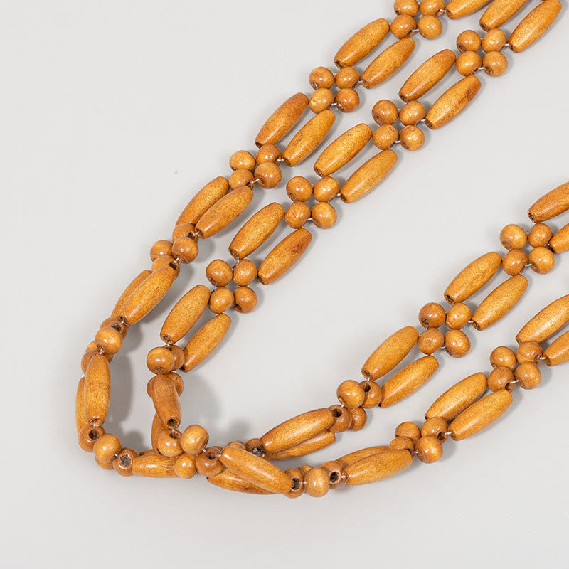 - Matériaux : Perles en bois naturel, mélange de polyester et de coton