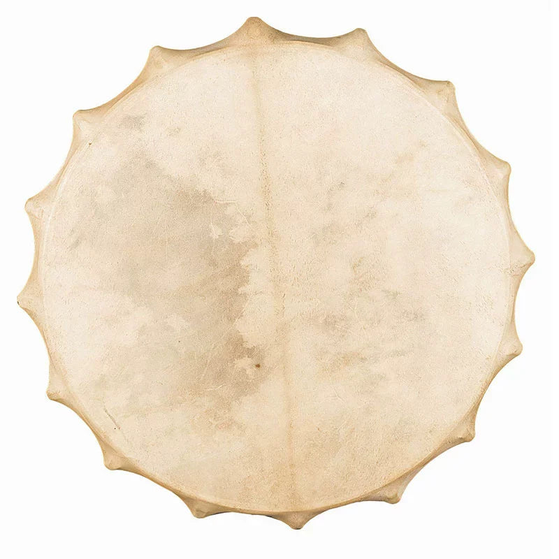 La peau du tambour est fabriquée à partir de peau d'animal naturelle , généralement de peau de chèvre, de vache ou de cerf , ce qui offre un son riche et organique .